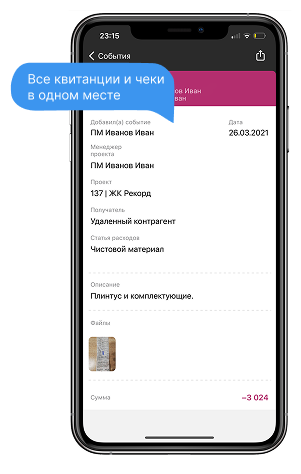 после каждой покупки материалов, получаете уведомление с чеком;